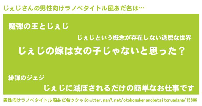 じぇじさんの男性向けラノベタイトル風あだ名をツクッター!