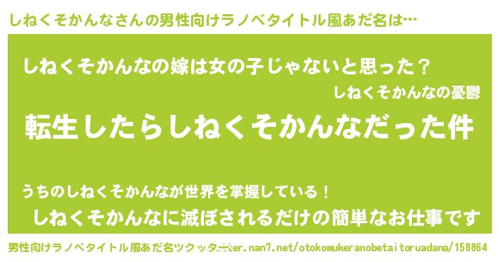 | 料理風あだ名 | 『しねくそかんなとほうれんそうの和風グラタン』 |