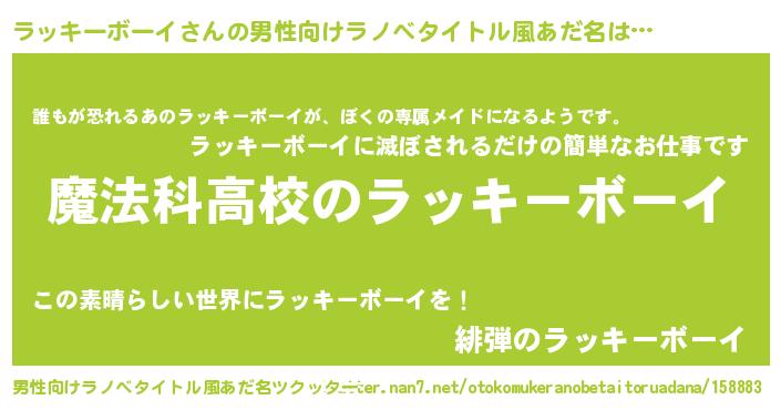 | 女子向けラノベタイトル風あだ名 | 『ラッキーボーイアンティーク』 |