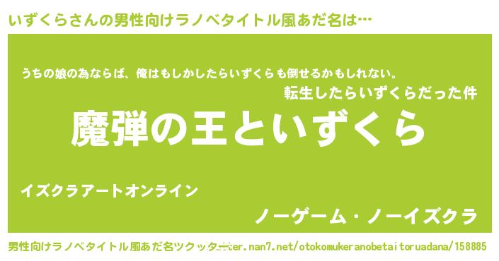 | 女子向けラノベタイトル風あだ名 | 『いずくらが死なない童話 林檎のいずくらの診療簿』 |