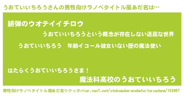 | 女子向けラノベタイトル風あだ名 | 『うおていいちろうの玉の輿計画!』 |