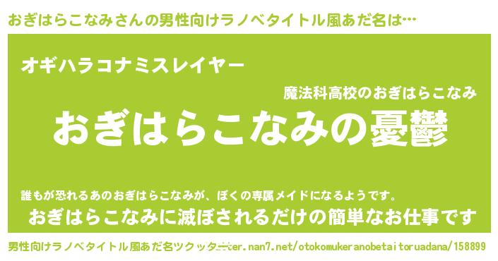 | 女子向けラノベタイトル風あだ名 | 『(仮)おぎはらこなみのやんごとなき事情』 |