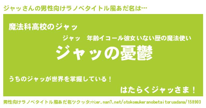 | 女子向けラノベタイトル風あだ名 | 『(仮)ジャッのやんごとなき事情』 |