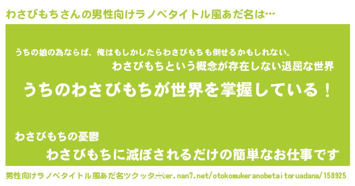 | 胡散臭い通販商品みたいなあだ名 | 『運命の人と巡り会える高級そうな壺…その名も「わさびもち」』 |