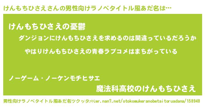 女子向けラノベタイトル風あだ名 | 『けんもちひさえの雑貨屋さん』 |