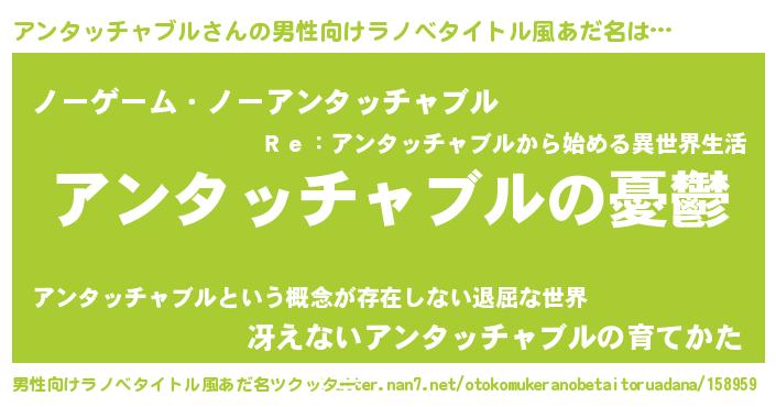 | ヘコむあだ名 | 『アンにー』『アンタッチャブル(笑)』 |