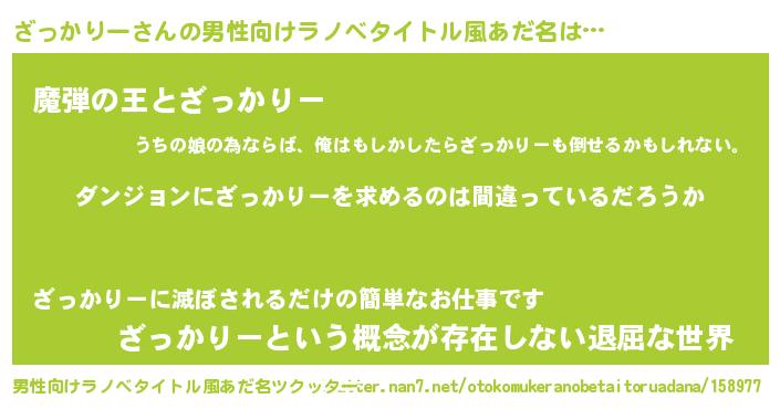| 女子向けラノベタイトル風あだ名 | 『ざっかりーは平凡を望む』 |
