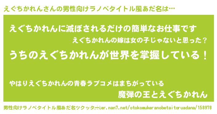 | 胡散臭い通販商品みたいなあだ名 | 『あなたにだけ特別に提供する世界で10本だけ現存している希少なブランデー…その名も「えぐちかれん」』 |