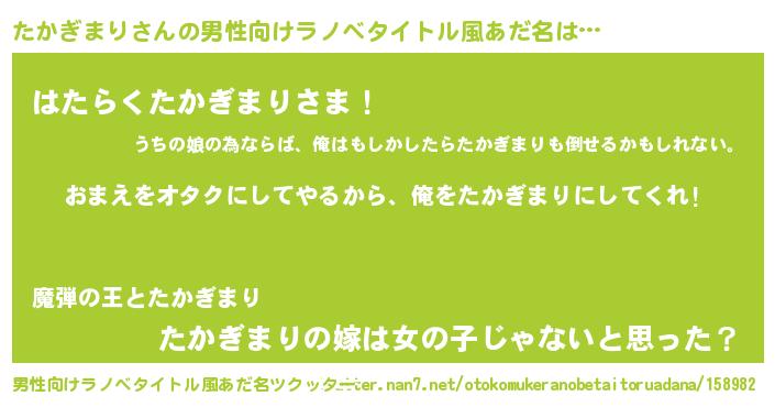 | 女子向けラノベタイトル風あだ名 | 『たかぎまり恋絵巻』 |