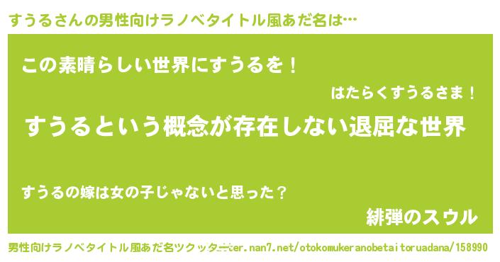 | 胡散臭い通販商品みたいなあだ名 | 『絶対に幸福をもたらす健康食品…その名も「すうる」』 |