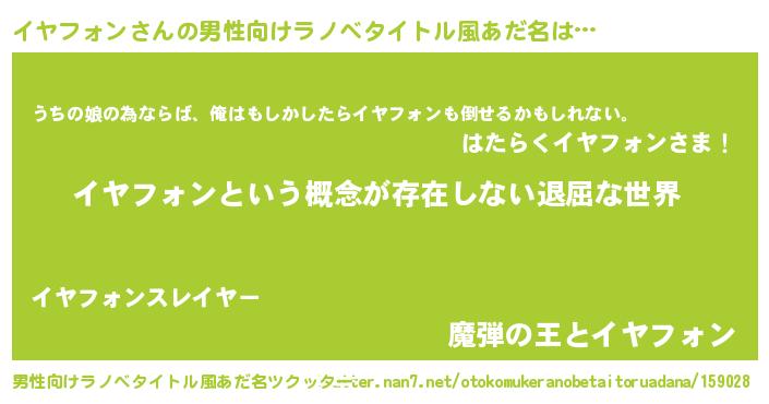 | 女子向けラノベタイトル風あだ名 | 『イヤフォンの契約王妃』 |