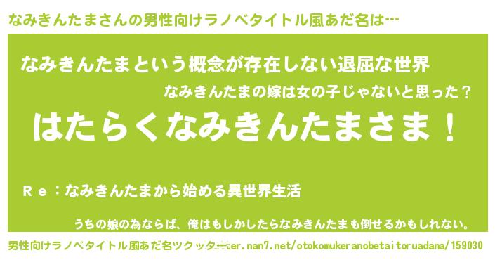 | 胡散臭い通販商品みたいなあだ名 | 『絶対に幸福をもたらす健康食品…その名も「なみきんたま」』 |