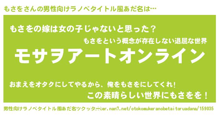 | ヒーロー風カッコイイあだ名 | 『スーパーモサヲ』『天弓騎士モサ』 |