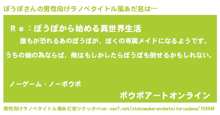| ファンタジー風あだ名 | 『エターナルポウポー』『ゼポウトゥ』 |