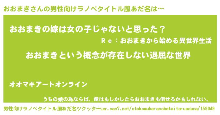 | 女子向けラノベタイトル風あだ名 | 『おおまきの契約王妃』『闇のおおまき』 |