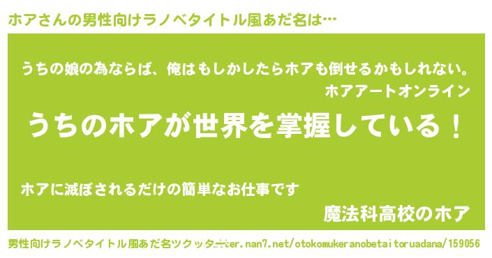 | 女子向けラノベタイトル風あだ名 | 『男装ホアの憂鬱な任務』『ホアの婚約者』 |