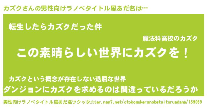 | 女子向けラノベタイトル風あだ名 | 『乙女ゲームの破滅フラグしかない悪役カズクに転生してしまった…』 |