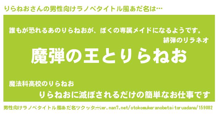 りらねおさんの男性向けラノベタイトル風あだ名をツクッター!