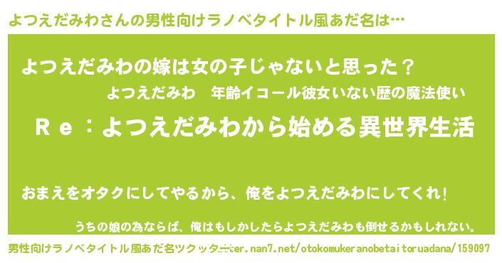| 意味不明あだ名 | 『自称よつえだみわ』 |