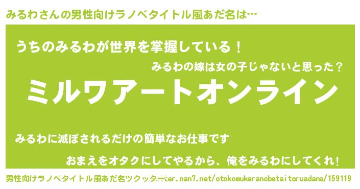 | 女子向けラノベタイトル風あだ名 | 『みるわ姫と円卓の騎士』 |