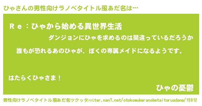 | 胡散臭い通販商品みたいなあだ名 | 『来世でも幸せになれる水素水…その名も「ひゃ」』 |