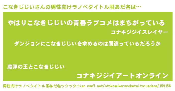 | 欧米人風あだ名 | 『ウサインこなきじじい』 |