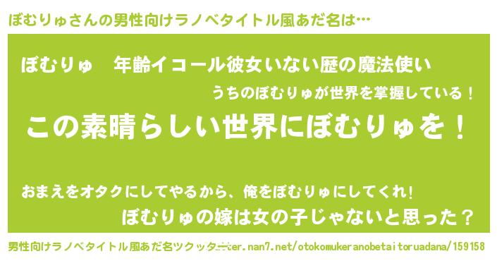 | 胡散臭い通販商品みたいなあだ名 | 『あなたにだけ特別に提供する世界で10本だけ現存している希少なブランデー…その名も「ぼむりゅ」』 |