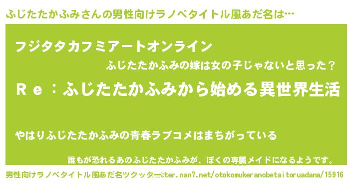 ふじたたかふみさんの男性向けラノベタイトル風あだ名をツクッター!