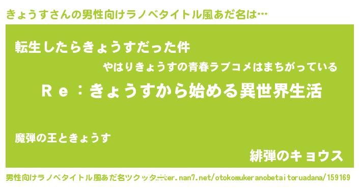 | 意味不明あだ名 | 『自称きょうす』『なめこ科きょうす属』 |