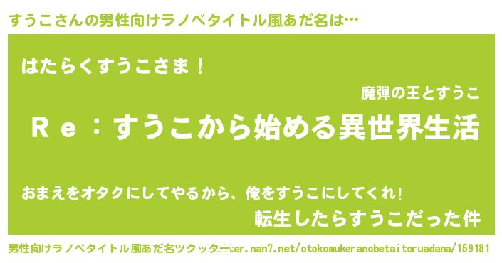 | 伝説のあだ名 | 『救世主となる錬金術士すうこ』 |
