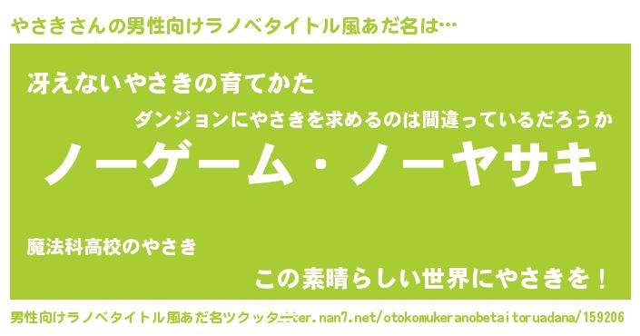 | ヒーロー風カッコイイあだ名 | 『慈愛の使者やさき』『仮面ヤサダー』 |