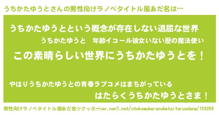 | 女子向けラノベタイトル風あだ名 | 『悪役うちかたゆうとに転生したようですが、知った事ではありません』 |