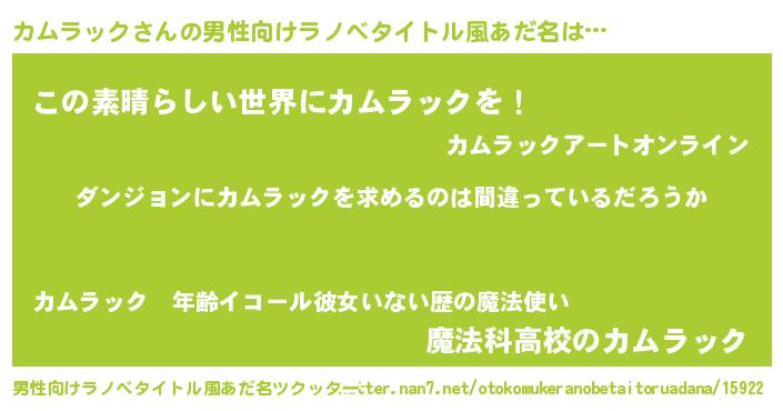 | 意味不明あだ名 | 『とにかく怪しいカムラック』 |