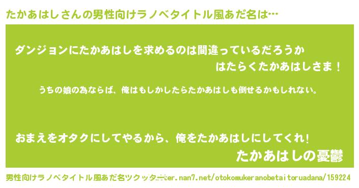 | 女子向けラノベタイトル風あだ名 | 『たかあはし伯爵の花嫁』 |