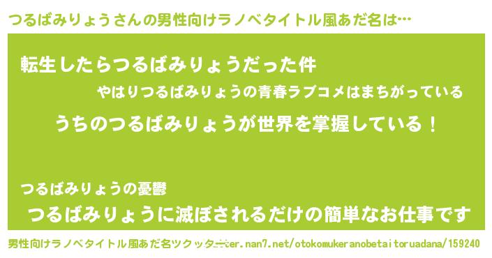 | 胡散臭い通販商品みたいなあだ名 | 『運命の人と巡り会える高級そうな絵画…その名も「つるばみりょう」』 |