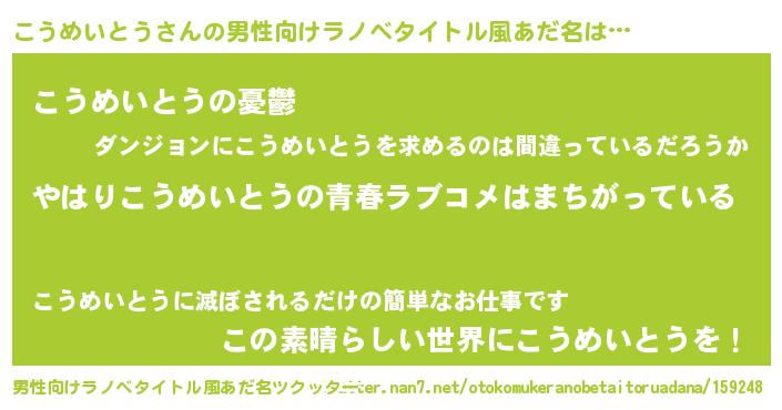 | 女子向けラノベタイトル風あだ名 | 『こうめいとうの雑貨屋さん』 |