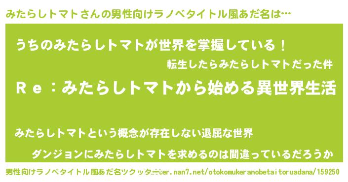 | 欧米人風あだ名 | 『ケンブリッジみたらしトマト』 |