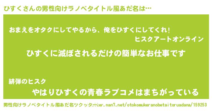 | 女子向けラノベタイトル風あだ名 | 『横柄ひすくと宰相陛下』『ひすく恋絵巻』 |