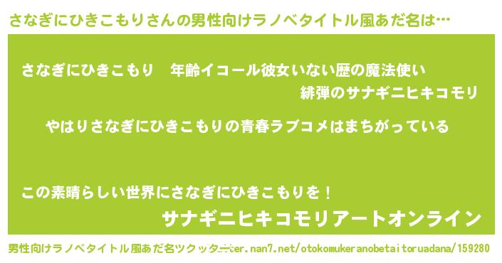 | 女子向けラノベタイトル風あだ名 | 『さなぎにひきこもりの雑貨屋さん』 |