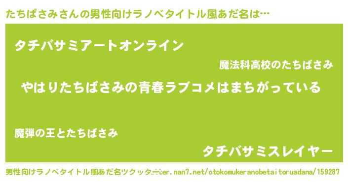 | 女子向けラノベタイトル風あだ名 | 『たちばさみの雑貨屋さん』 |
