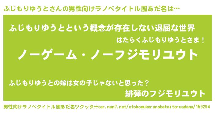 | 女子向けラノベタイトル風あだ名 | 『死神ふじもりゆうとの再婚』 |