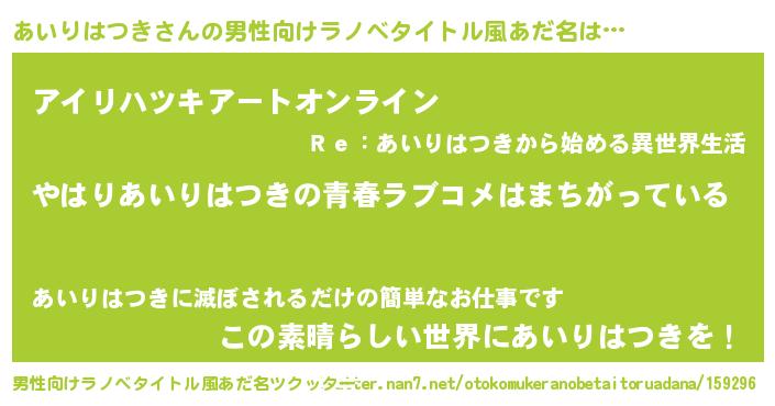 | 胡散臭い通販商品みたいなあだ名 | 『世界が平和になる高級そうな絵画…その名も「あいりはつき」』 |