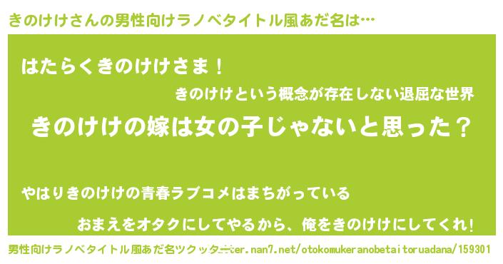 | 女子向けラノベタイトル風あだ名 | 『きのけけ様がみてる』『きのけけ恋絵巻』 |