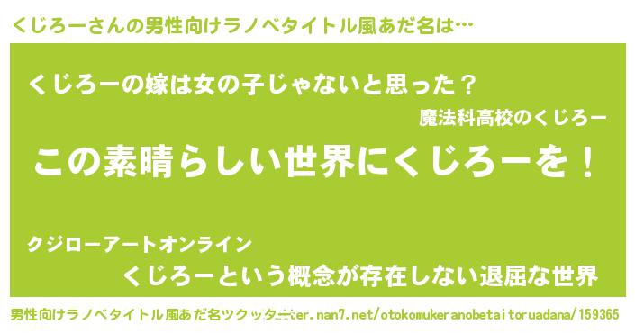 | 女子向けラノベタイトル風あだ名 | 『乙女ゲームの破滅フラグしかない悪役くじろーに転生してしまった…』 |