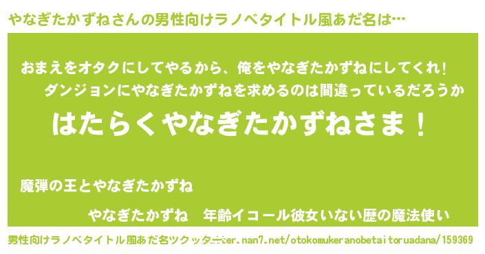 | 胡散臭い通販商品みたいなあだ名 | 『100人中100人が認めたイリジウム磁石…その名も「やなぎたかずね」』 |