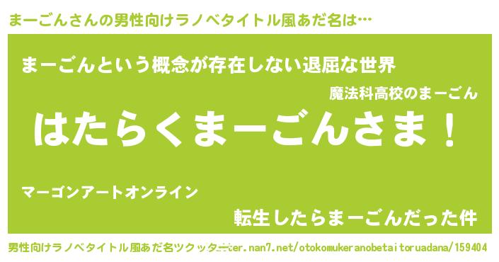 | 胡散臭い通販商品みたいなあだ名 | 『絶対に幸福をもたらす水素水…その名も「まーごん」』 |
