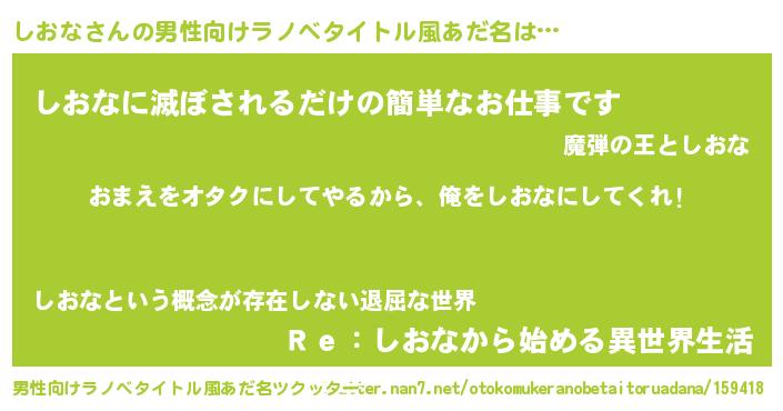 | ヒーロー風カッコイイあだ名 | 『正義の使者しおな』『仮面シオダー』 |