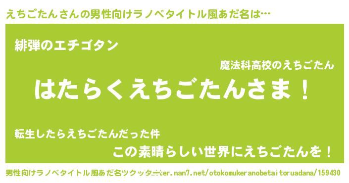 えちごたんさんの男性向けラノベタイトル風あだ名をツクッター!