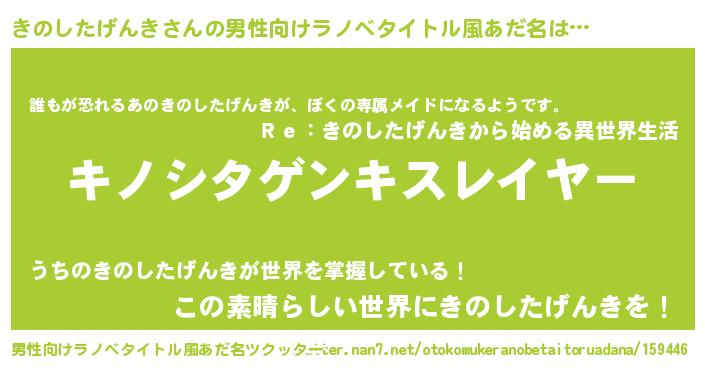 | ヒーロー風カッコイイあだ名 | 『ネオキノシタゲンキ』『仮面キノダー』 |