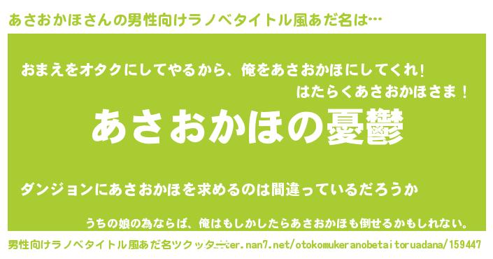 | 胡散臭い通販商品みたいなあだ名 | 『必ず成功するブレスレット…その名も「あさおかほ」』 |